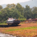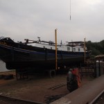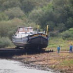 Trier has the only shipyard, closest to our home base of Toul, which can handle a barge the size of the Betty B. So it is in Trier where the barge is taken out of the water at the Hans Boost shipyard. This was an amazing process to witness the dear old 90 tonne barge being slowly taken out of the water and up the river bank ready for the seven year licence inspection.