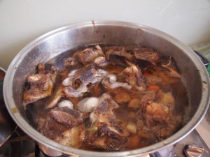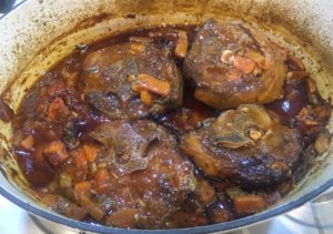 Slow cooked, braised lamb necks in a scrumptious sauce, made with our home-made beef or chicken stock adds such a depth of flavour.  Garnished with a gremolata and lemon slices, this lamb makes a wonderful winter dinner served with creamed cauliflower and wok tossed mixed greens.  As with any meat that you cook on the bone, such as oxtail, short rib, osso bucco, it is extremely flavourful, and it is still inexpensive.