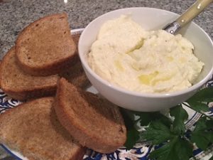 This dish is usually served as an hors d’oeuvre with toasted baguette as in the photo above. In this recipe it is served ‘au gratin’, browned, with cheese on top, making it that much more delicious.