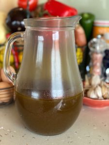 Today the ‘eye’ of the silver-side or the girello is most popular.  This is a leaner cut with just a little fat on the outside and it is the fat which I miss. Corned beef has been soaked in a salt bath by the butcher; this gives the meat its texture and flavour. When cold, it is easily reheated; always reserve some of the cooking liquid and simmer the beef in it until warmed through. I always save the cooking liquor as it makes a beautiful corned beef stock and broth.  After removing the beef, strain the stock, and reduce the liquid.  It makes a divine broth to drink like soup, see the jug with the broth in the photo below.  I also freeze this stock and use it, along with extra water, when I cook my next corned beef.