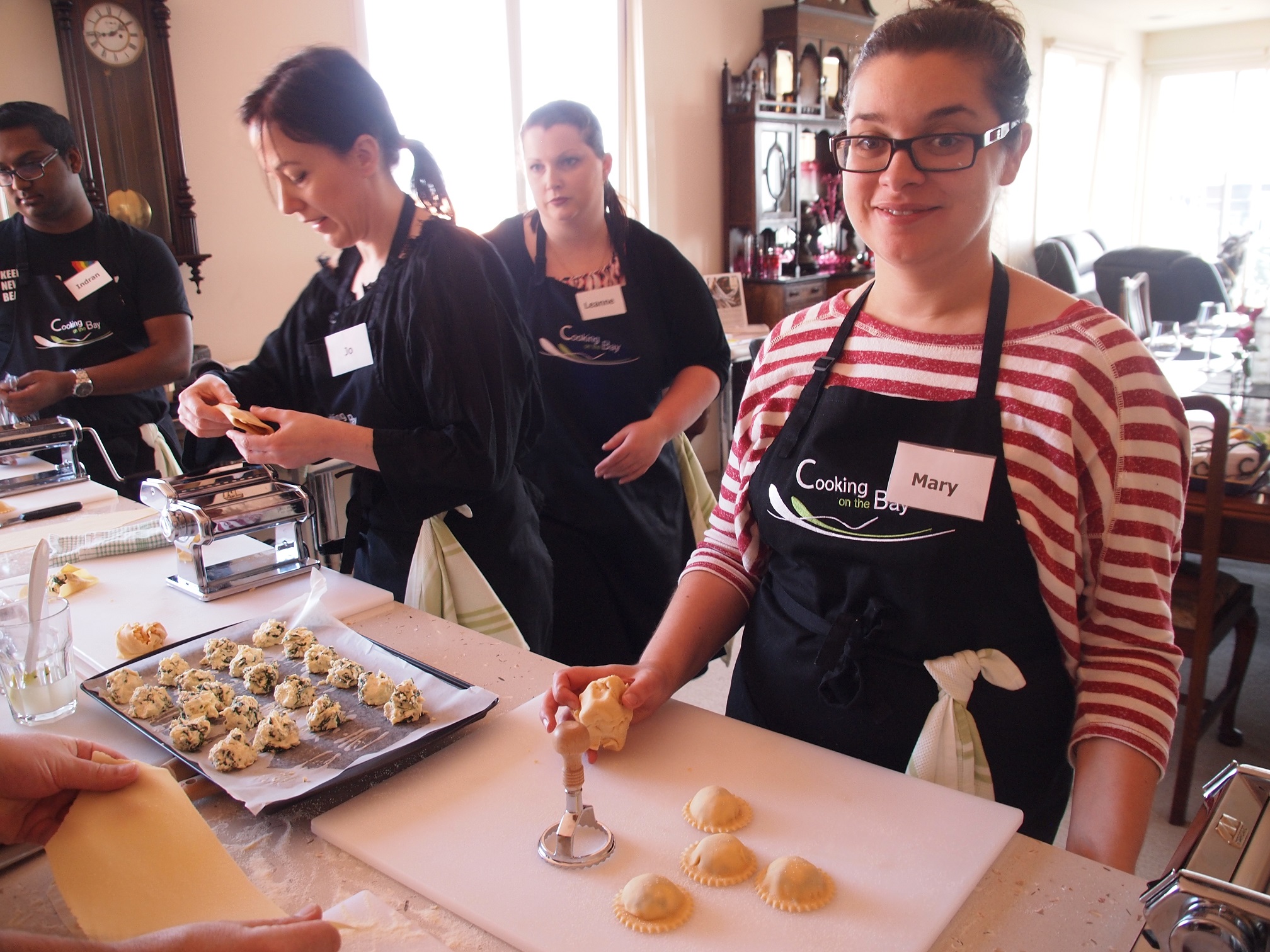 Marvellous Italian cooking at Cooking on the Bay l Marvellous Italian cooking at Cooking on the Bay last weekend with a large and busy group of very enthusiastic cooks. It was an exciting day full of lots of activity and great cooking. The pasta was delicious. The vegetarian ravioli filling was beautifully cut brunoise dice of sweet potato, parsnip mushrooms, garlic, pistachio, spinach and ricotta, carefully rolled balls for the ravioli was delicious with the sage butter sauce and the puttanesca sauce for the fettuccine flavourful and colourful. Finished with a beautiful limoncello sauced yoghurt Panna cotta… #cookingonthebaycookeryschool #italiancookingclassesmelbourne #pastamakingclassesmelbourne #cookingonthebaycookingclasses