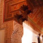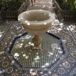 One of the special buildings in Marrakesh is the El Bahia Palace; it was built for Ahmed Ibn Moussa between 1894 and 1900 in the Alawi style that was popular at the time. Craftsmen were brought from Fez to work on this monumental task which took approximately fifteen years to complete. It is said that the palace was built as a home for Ba Ahmed’s official concubines, and it has also been said that the importance or favour of each concubine increased along with the size of their bedroom. The name ‘Bahia’ means ‘palace of the beautiful’ and this would seem to fit the purpose of this massive palace. There are 160 different rooms in the palace which are sprawled out in an open, rambling fashion. The reception halls and private quarters are lavishly decorated and there are several tiled courts – often complete with water features – that serve as open air areas where the women could have washed and rested themselves. Decorations take the form of subtle stucco panels, zellij decorations, tiled floors, smooth arches, carved-cedar ceilings, shiny marble (tadlak) finishes and zouak painted ceilings. The palace is surrounded by an eight-hectare garden, some of which now provides the peaceful, shaded entry walk through the orange grove.
