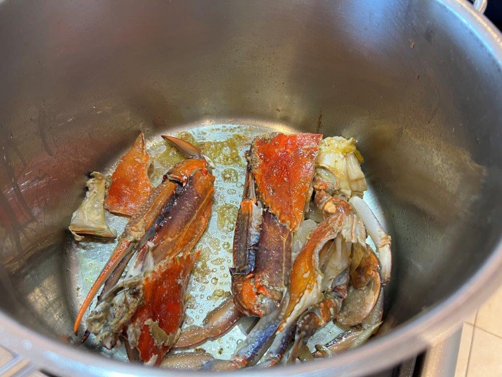 Anna Xia – Cooking Fundamentals Class: Stocks, Sauces, Soups – `We made some beautiful stocks today from chicken to beef to fish and crab which we used to create the sauces for a hearty three course meal. French onion soup with cheesy sourdough croutons, pork cutlet with mushroom sauce and apple sauce and a poached pear in puff pastry dessert with salted caramel and creme anglaise which you can churn to make ice cream. A real delight to the tastebuds. Bring containers to take your stocks home.’ Anna Xia, Saturday 28th October, 2023.