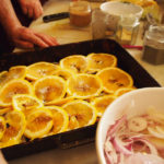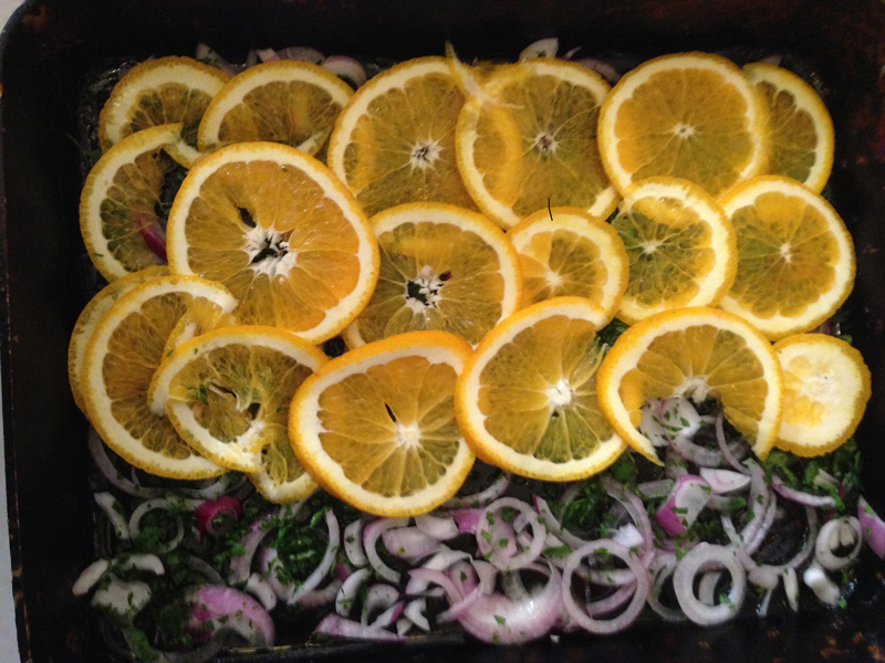 - Cooking the saffron, orange and lemon tagine