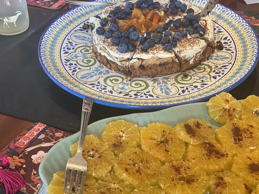 ‘Tonya, thanks for all the great tips and recipes. I enjoyed it so much I hope to book another class soon. Thank you so much for sharing all your knowledge. I know I would never have tried out these recipes if I’d just found them in a recipe book. I was so enthused about trying the recipes at home that yesterday I got my can of beans from the back of the pantry and made the bean dip which disappeared by the end of the day. It was so delicious and had a few family members visit during the day who all loved it. Today I made the chocolate torte and shared it with neighbours, my husband and a daughter who lives near. It was really quite simple and so very good!! Also did the oranges!! So refreshing !! Today I also bought the ingredients to make the chicken pie so that’s tomorrow night’s dinner. With thanks again for all your information and such a lovely Sunday lunch. Kind regards Jenny Winckle.’ Sunday 18th April 2021. Moroccan Exotic Spices and Flavours of the Medina cooking class.