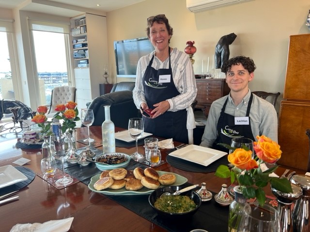 ‘Tonya is a wonderful host and inspiring chef. She had some of the preparation done ahead so we could concentrate on the cooking. What a feast we prepared! We were given clear detailed instructions and explanations to understand what we were doing. She encouraged us to use our skills during the class. Sharing lunch and conversation was special’. Moroccan Cooking Class: Dishes, Spices and Flavours from Colette Goydych with Rocque and son Will – November 2025.