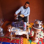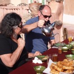 Moroccan tea is always prepared in front of the guests and it is the custom, that when both men and women are present, for the man to pour the tea! One day we waited 1½ hours for the head of the household to return from the Friday prayers to pour our tea and start our lunch!