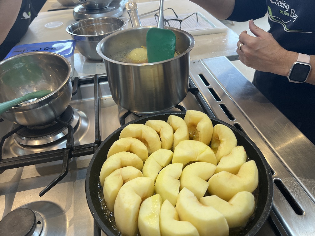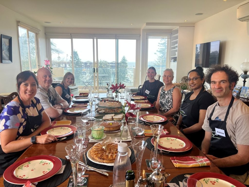 ‘Such nice weather for a super nice French desserts extravaganza. We were served a coronation quiche with some greens just so we ate something as a basis for the waves of dessert offerings to come. Apple tart tatin with Crème Anglaise ice cream, profiteroles filled with crème pâtissière and chocolate sauce, passionfruit soufflé, basque cheesecake and speculoos which are French cinnamon short bread biscuits. Many thanks to Tonya and her assistant Sandra for a wonderful day. You’d be surprised at your own baking and cooking ability. A nice drop of rosé or sparkling certainly livened the atmosphere.’ Anna Xia, Victoria. Sunday 29 October, 2023.