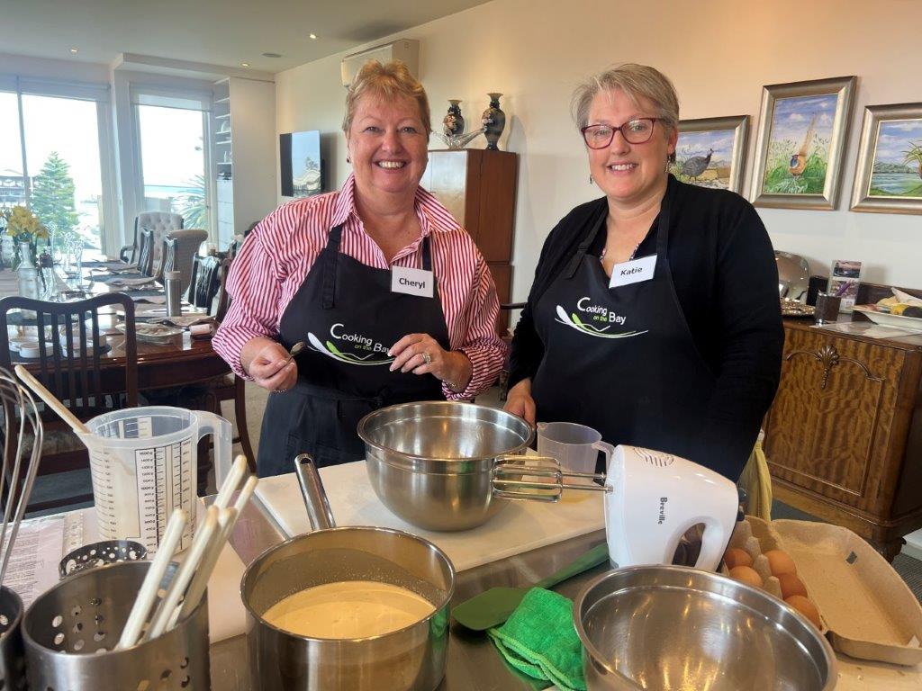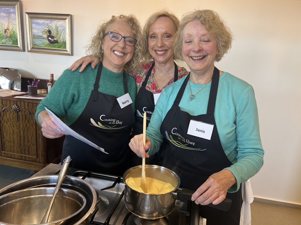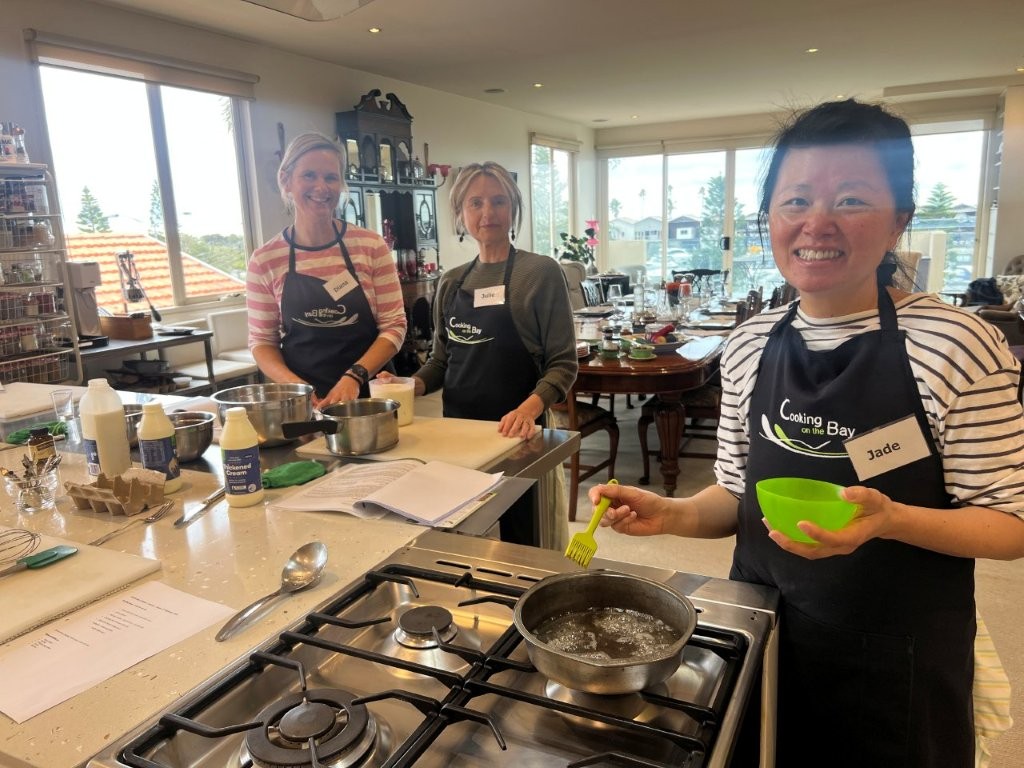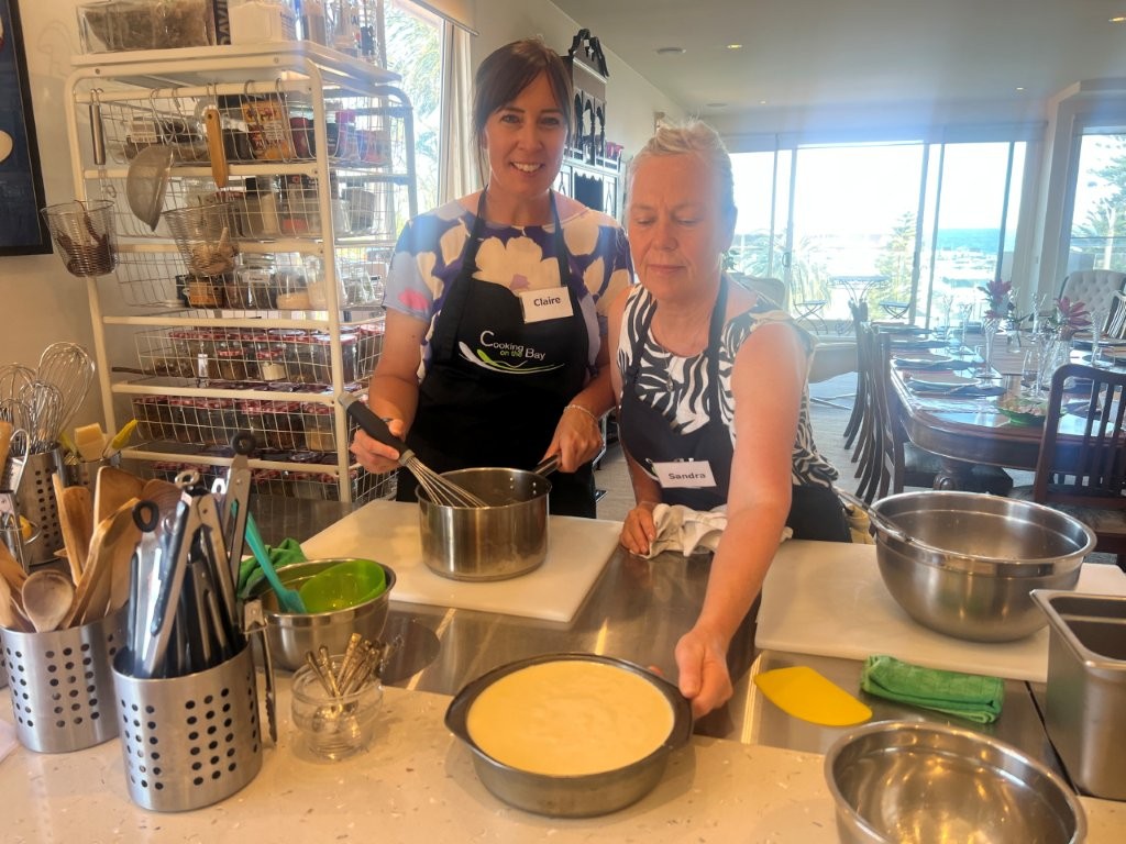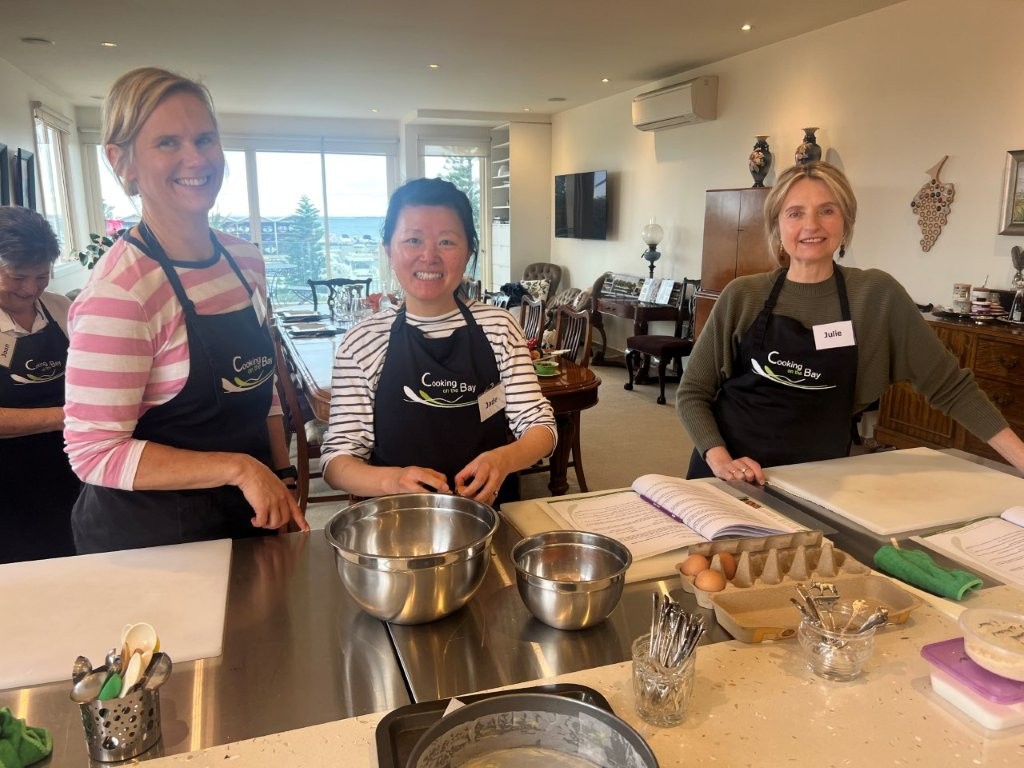 All classes are small, hands-on, relaxed, fun and informative. You are welcomed with a tea, coffee, cold drink and a cake or biscuit made in-house in the Cooking on the Bay kitchen. You take home a comprehensive recipe booklet of all the recipes we cooked in class, plus cooking extra hints and tips.