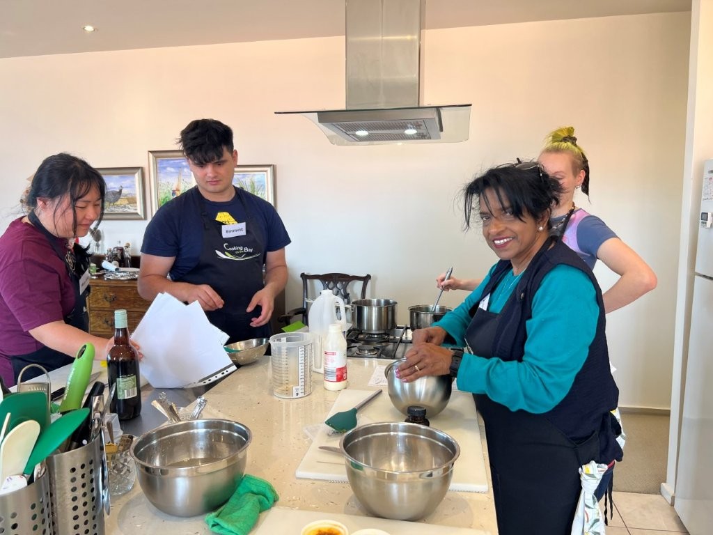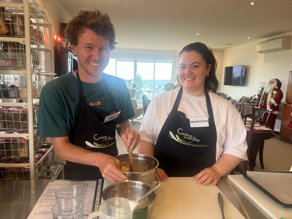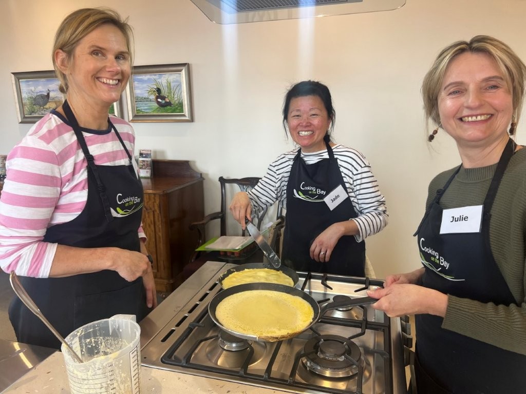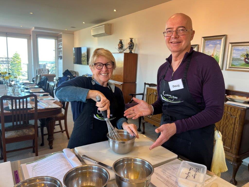 All classes are small, hands-on, relaxed, fun and informative. You are welcomed with a tea, coffee, cold drink and a cake or biscuit made in-house in the Cooking on the Bay kitchen. You take home a comprehensive recipe booklet of all the recipes we cooked in class, plus cooking extra hints and tips.