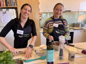 Marvellous Italian cooking at Cooking on the Bay l Marvellous Italian cooking at Cooking on the Bay last weekend with a large and busy group of very enthusiastic cooks. It was an exciting day full of lots of activity and great cooking. The pasta was delicious. The vegetarian ravioli filling was beautifully cut brunoise dice of sweet potato, parsnip mushrooms, garlic, pistachio, spinach and ricotta, carefully rolled balls for the ravioli was delicious with the sage butter sauce and the puttanesca sauce for the fettuccine flavourful and colourful. Finished with a beautiful limoncello sauced yoghurt Panna cotta… #cookingonthebaycookeryschool #italiancookingclassesmelbourne #pastamakingclassesmelbourne #cookingonthebaycookingclasses