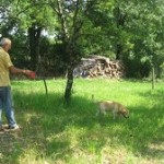 Edouard took his Labrador, on the leash, and headed for the oak grove, with his bags for the truffles and the treats for the dog. He instructs the dog to ‘cherche, cherche’ –search, search – and the dog with his nose to the ground, scents the earth searching for the smell that will indicate the presence of the truffle. When the dog starts to paw the ground and dig, indicating that he has found something, Edouard gently pushes the dog away and scratches carefully with his blade, around the spot, to see if the truffle is large enough to gather. Many we found were too small and so were recovered to harvest another time. Once the truffle is unearthed gathered, the dog will have his reward, a cheese, or meat treat – both the dog and the trufficulteur are happy