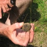 Truffles are the highly fragrant subterranean fungus that grows symbiotically with the roots of certain trees. In Perigord the trees are almost always oak, and that was the case with Edouard’s trees; other trees include chestnut, hazelnut, evergreen oaks, birch, beech, poplar. These Perigordian oak trees like to grow in dry, stoney soil, Jurassic soil, with an alkaline of ph8.