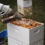 - Smoke soothes the bees