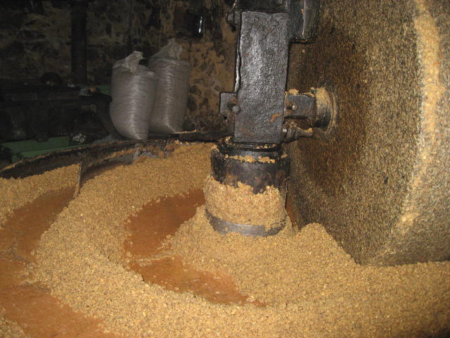 - Grinding the walnuts under the huge stone